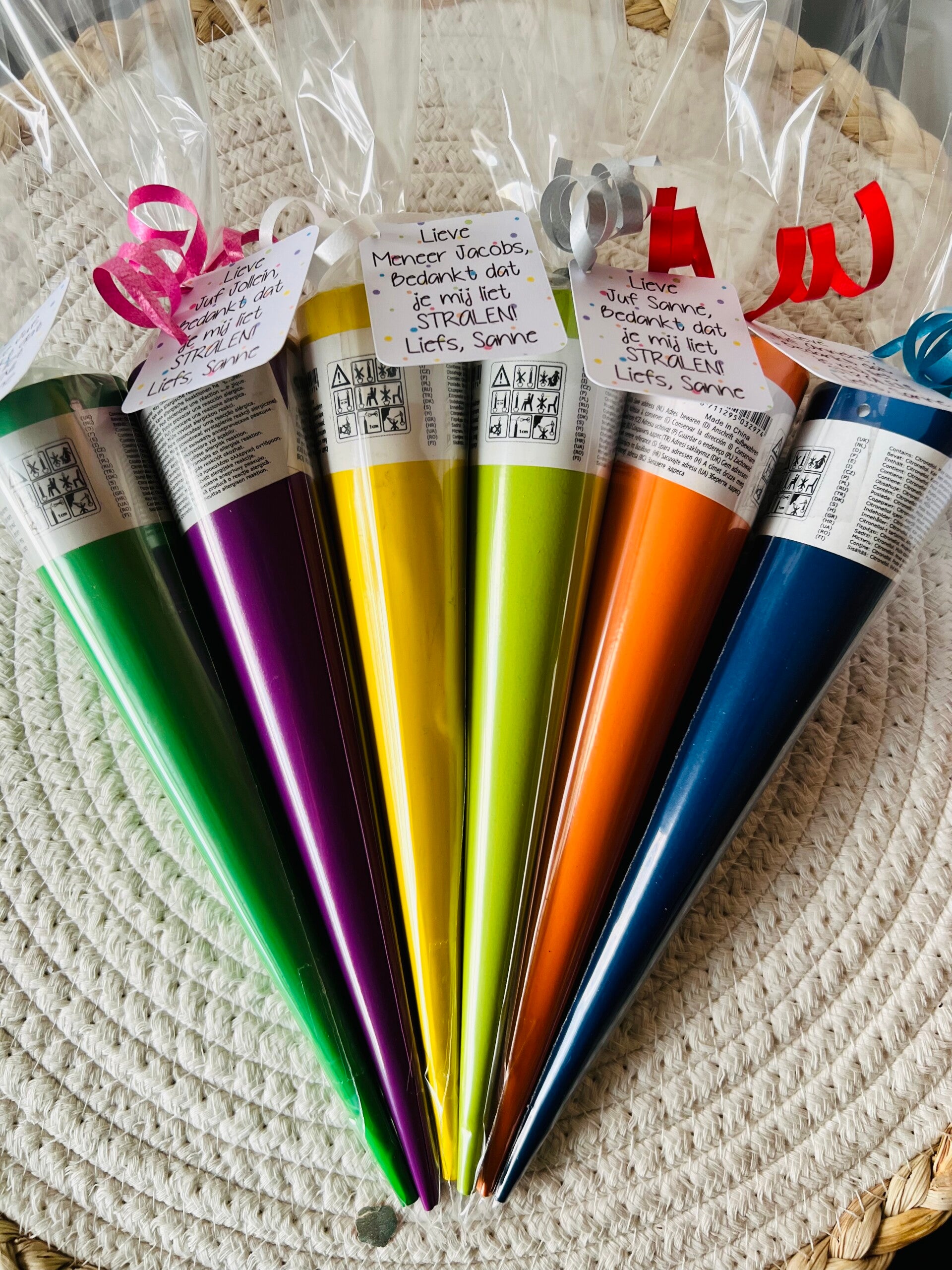 Hoe gaaf is deze feestelijk verpakte theelicht fakkel met kaartje? In de fakkel zit een citroen kaarsje in diverse kleuren. Aan de tuinfakkel zit een kaartje met de tekst: Bedankt dat je mij liet stralen.