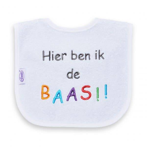 Deze super leuke slab is van het merk funnies. Het slabbetje is voorzien van een handige klittenbandsluiting en heeft de tekst: Hier ben ik de baas!! Super leuk als kraamcadeautje of een cadeautje voor de babyshower aangezien je slabbetjes nooit genoeg kan hebben!