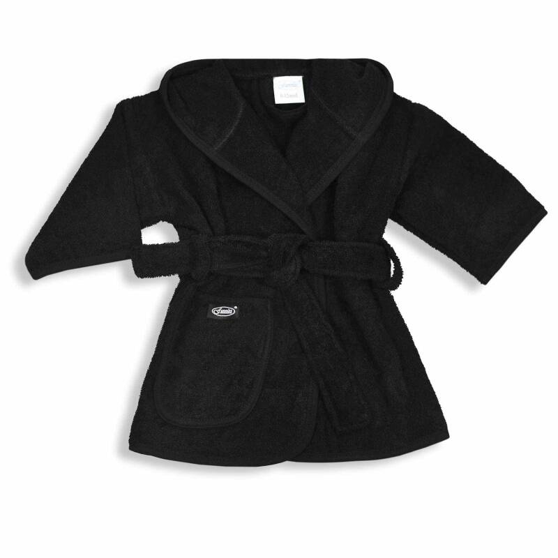 Dit super leuke zwarte badjasje is van het merk Funnies. Het badjasje heeft lange mouwen en een handige capuchon. Super handig voor na het badderen of voor op het consultatiebureau.