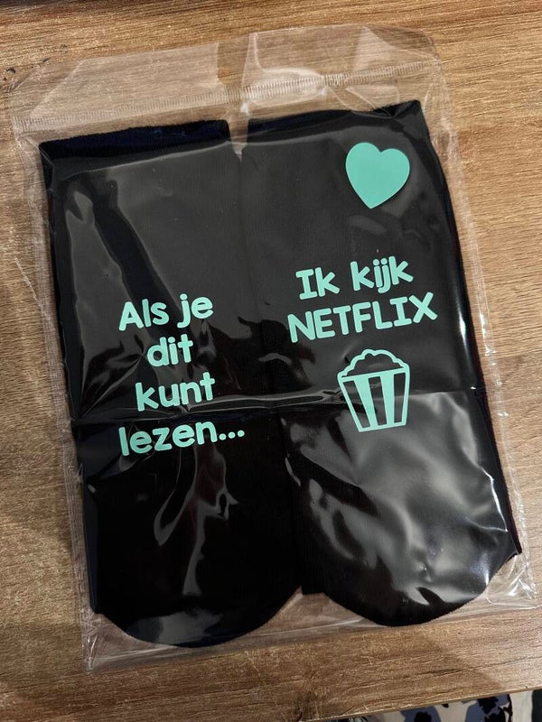 Hoe leuk zijn deze zwarte sokken met tekst: Als je dit kunt lezen... Ik kijk NETFLIX! Deze sokken zijn natuurlijk super leuk voor een echte netflix liefhebber!
