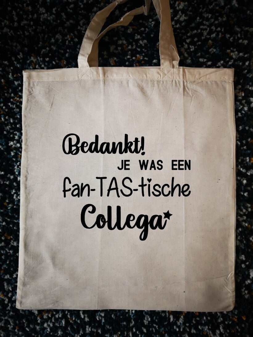 Deze leuke tas wordt bedrukt met de tekst: Bedankt! Je was een fantastische collega! Super leuk als blijvend cadeautje voor je leukste collega!